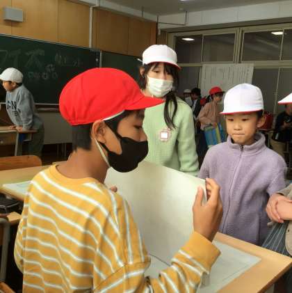 6年生の流れるような誘導で、クイズから輪投げへとご案内!