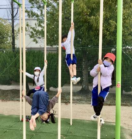 縄跳びが盛んですが、登り棒ガールズも健在でした。^ ^