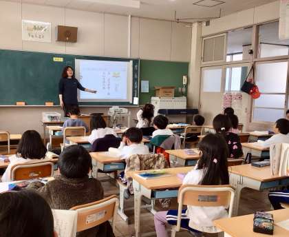 教師からは、ICT機器を効果的に使って、近くの友だちに聞こえるくらいの声を出してよむこと、登場人物の様子を思い浮べて読むことの説明がありました。