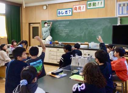 子どもたちは、相互に意見を交わすなかで、空気を温めると体積がふくらみ、冷やすと体積が縮むということを導き出しました。
