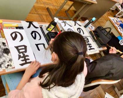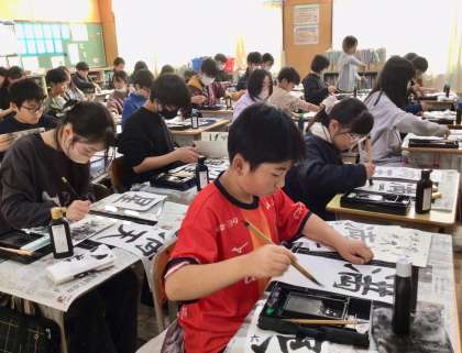 来年の書き初め大会に向けて、6年生らしく、ゆったり、どっしりと書いてほしいと思います。