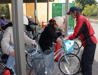 いよいよ自転車に乗って、施設内の模擬道路を走行します。
