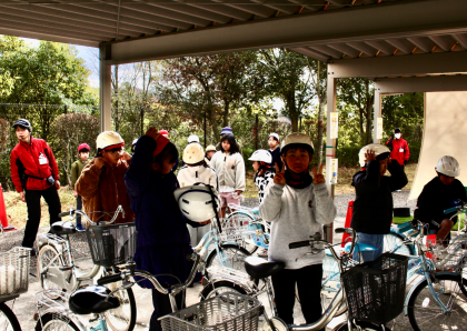 自転車の点検やヘルメットをかぶることの大切な意味を教えていただきました。