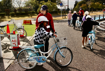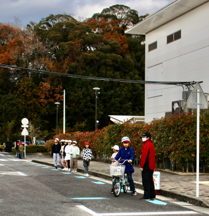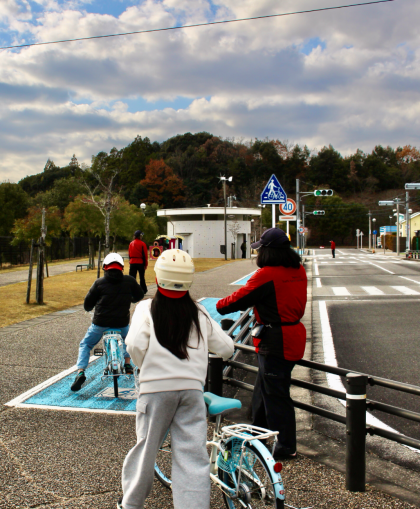 インストラクターさんが、一旦停止の場面で気をつけること、交差点の渡り方などを分かりやすく説明してくださったおかげで、後半は、自転車の運転に少し自信がついたように見えました。