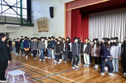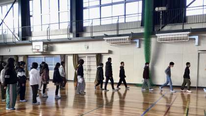 朝の会後、6年生が学年合唱の隊形移動の練習をしていました!
