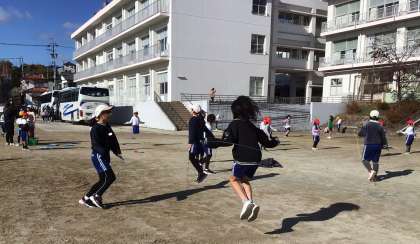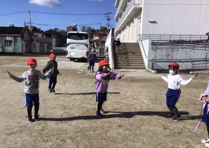 天候はばっちり。風は冷たく、縄跳びはやりにくそうでした。