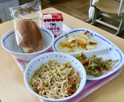 今日は、米粉パンと炒めビーフンの鉄板メニューです!