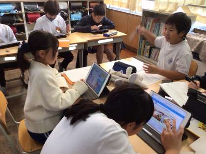 調べてきたことを、パワーポイントのスライドにまとめ、発表原稿を書き始めるグループもありました。1月の授業参観では、お家の方の前でプレゼンテーションをする予定です!