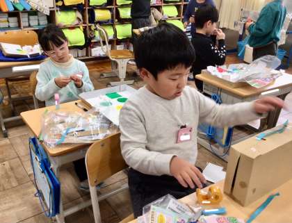 作り始めたら、どんどんとマイワールドを表現する子どもたちでした。