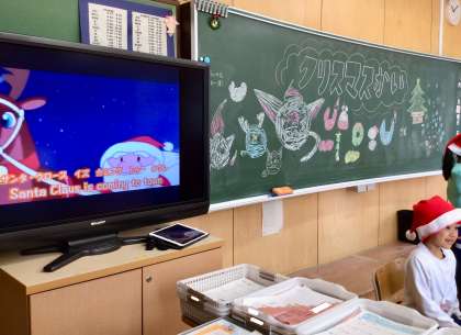 タブレットから動画のクリスマスソングを流してくれます!