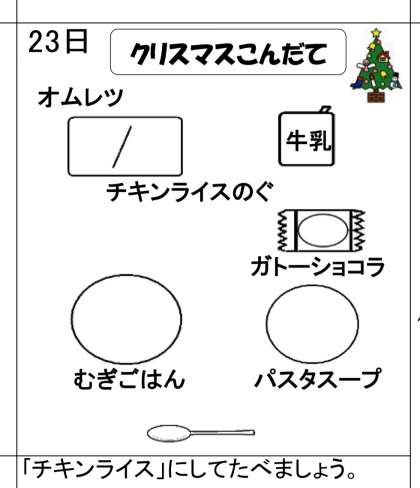 12月23日(火)クリスマスこんだて!