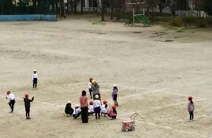 2組さんと3組さんが、短なわとドッジボールに熱中!