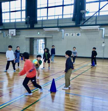 体育館でドッジボールや縄跳びに夢中になっているのは、プラムの子どもたち。