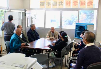 写真は 地区の区長さんをはじめ、地域学校共働本部の皆さんとミーティングをし ご意見を伺っているところです。