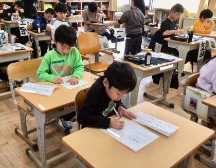 2、3時間目に書き初め大会が行われました。