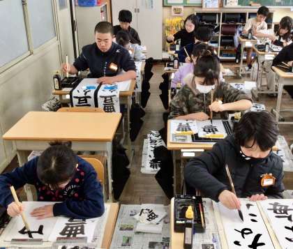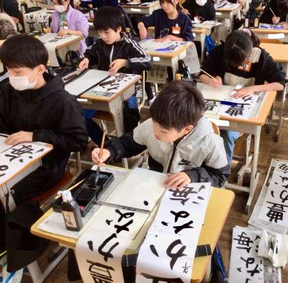 静まり返る教室で、紙と、自分の心と向き合う5年生です。