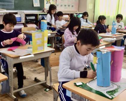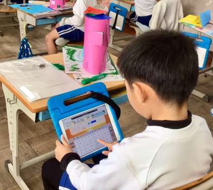 水性マジックでのキレイな塗り方を タブレットで調べている子もいました。