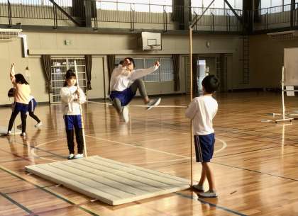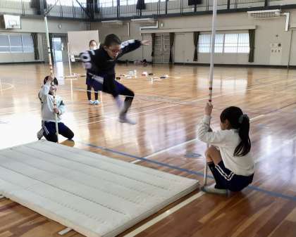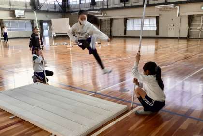 助走のスピード、踏み切りの角度、バー(ゴム)をこえる足の振り上げなど、ポイントを押さえて練習を積んでいます!