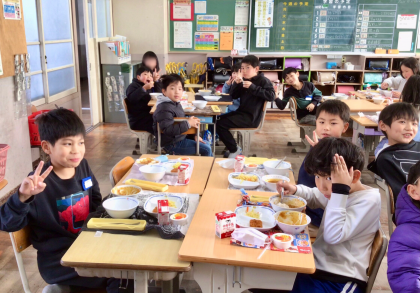 今日は いつもパワフル、疲れを知らない3年生の給食風景をお届けいたします!