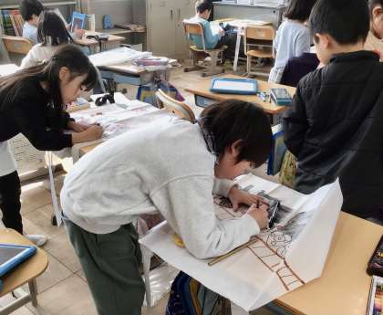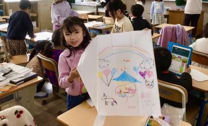 1月15日(木)1年生 図工 凧(たこ)づくり