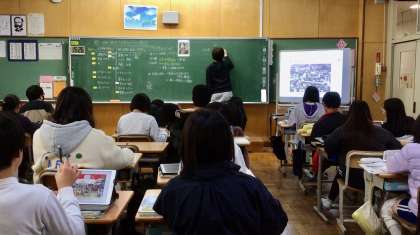 デジタル資料から読み取れる気づきを出し合いながら、時代の大きな変化の理由を探っています。