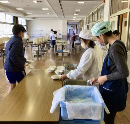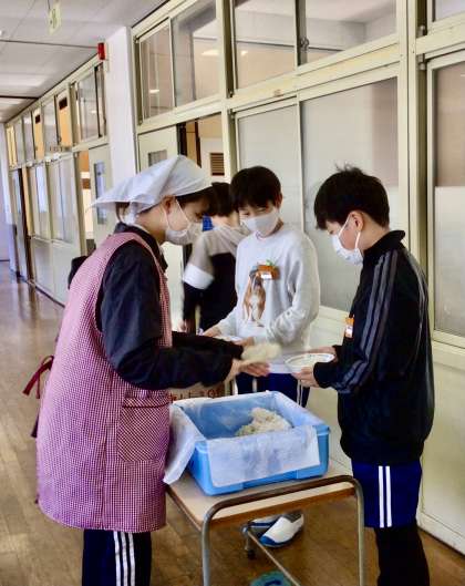 今日は 初なかよし遊びの運営準備を着々と進めている5年生の給食風景をお届けいたします!