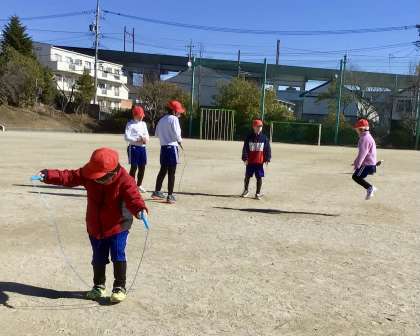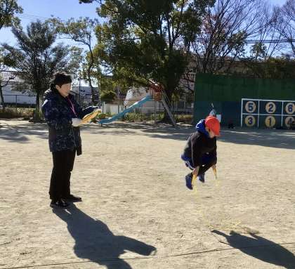 前跳び、後ろ跳び、あや跳び、交差跳び、二重跳びの5つの自己記録更新に挑戦しました!