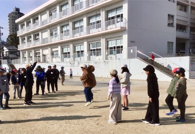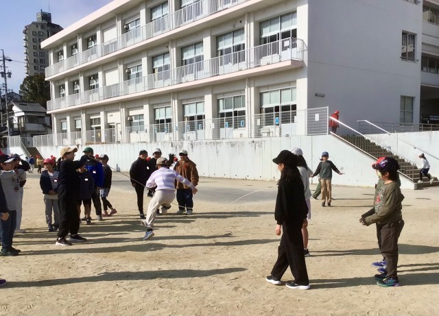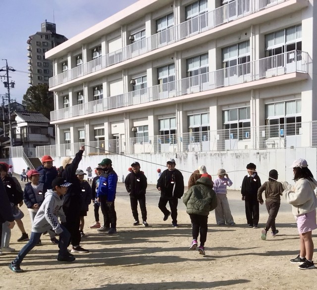 大なわを楽しむ4年生。