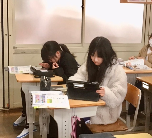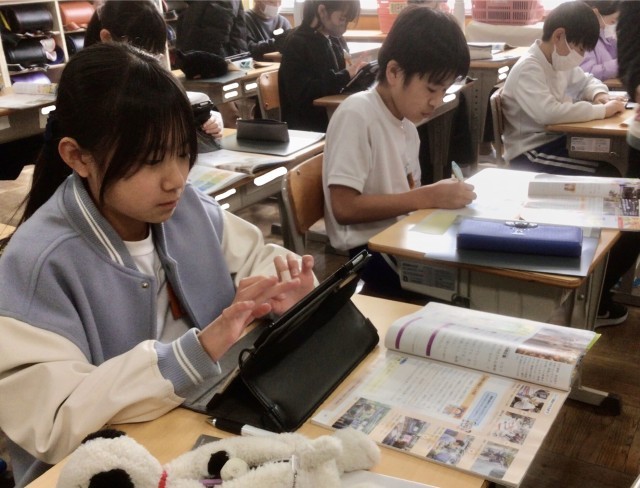 この単元の学習を通して学んだことを踏まえ、タブレットも活用しながら 振り返りを書きこんでいました。