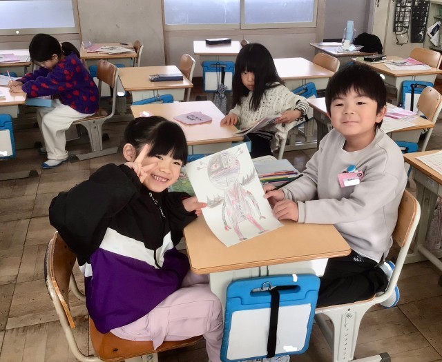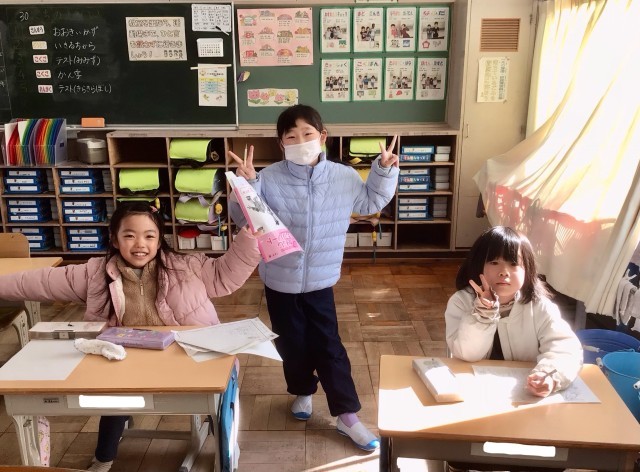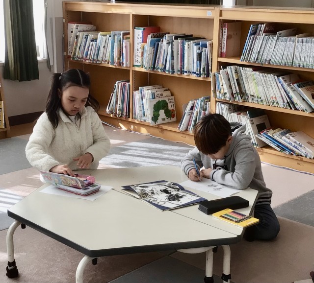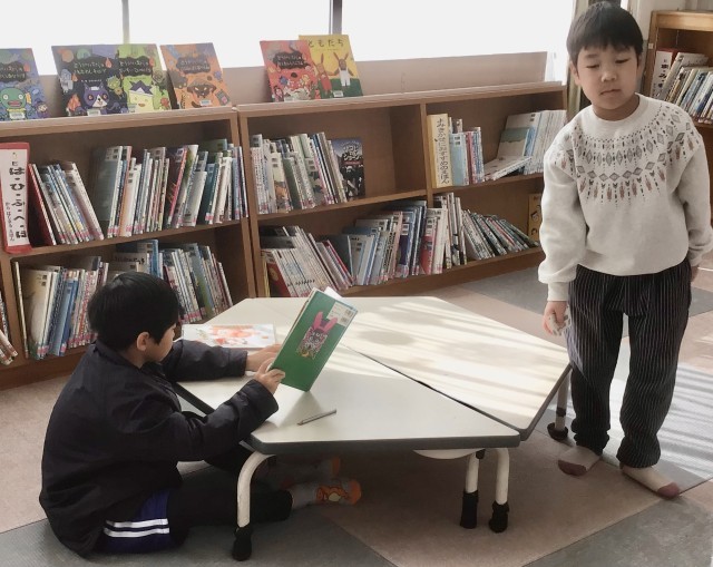 教室や図書室で 思い思いに過ごす低学年のみなさんです。^^