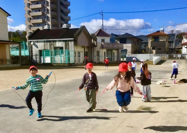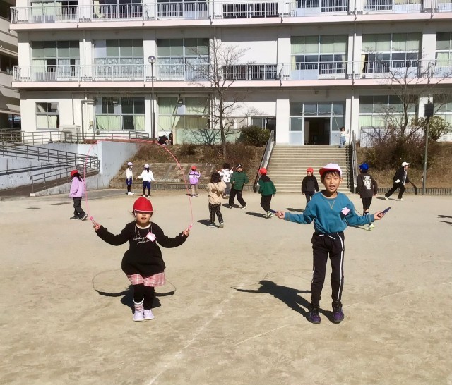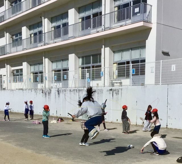アスファルトのなわとびコーナーは 今日も大にぎわいでした!