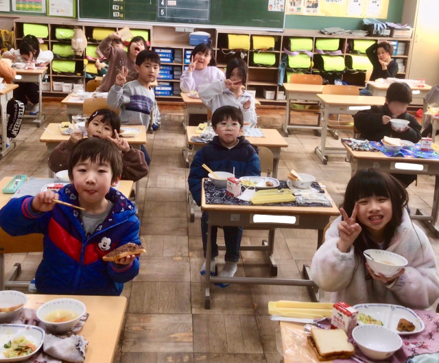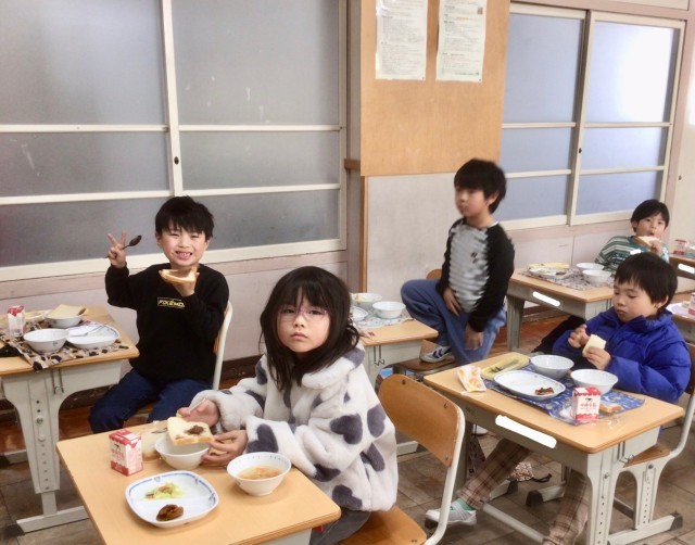 笑顔でおいしそうに食べる1年生のみなさんでした。^^