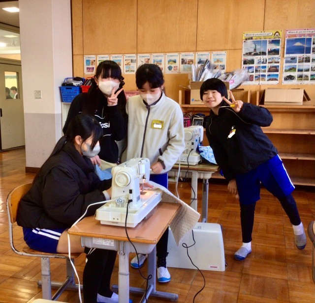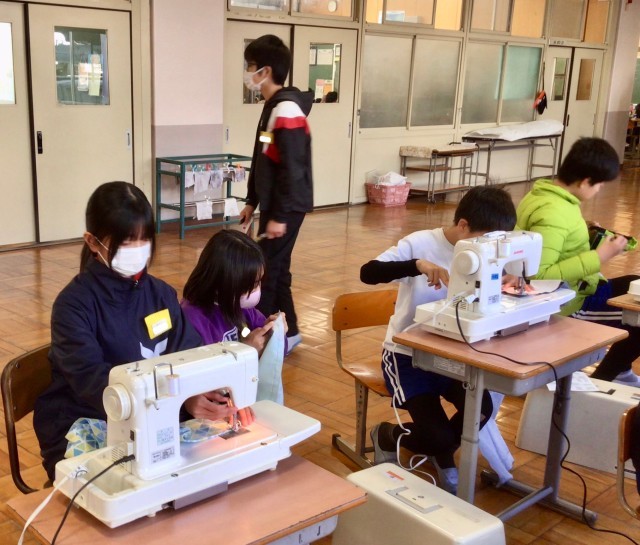子どもたちが 自分でデザインを工夫し、主体的にまた協働的にミシン縫いを行っていました。