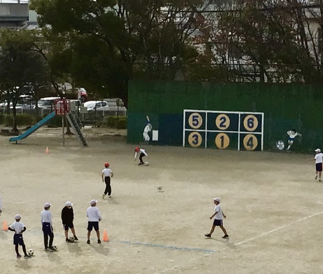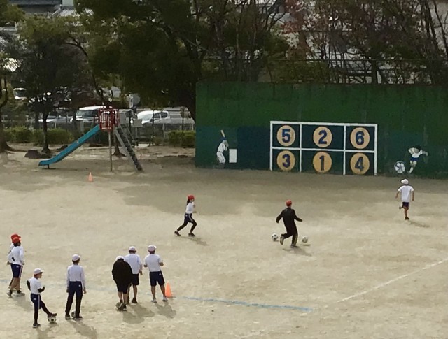 サッカーの授業も回を重ね、パス、ドリブルの基本操作や技能が少しずつ身についてきました。