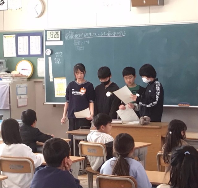 今日の給食後には、1年生から5年生までがユニットごとに集まり、送る会の打ち合わせを行いました!