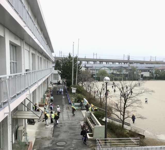 4時間授業、給食、清掃後の一斉下校です。