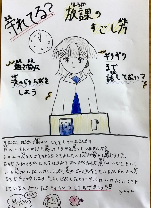 6年2組の皆さんが、休み時間の過ごし方キャンペーンを始めました。