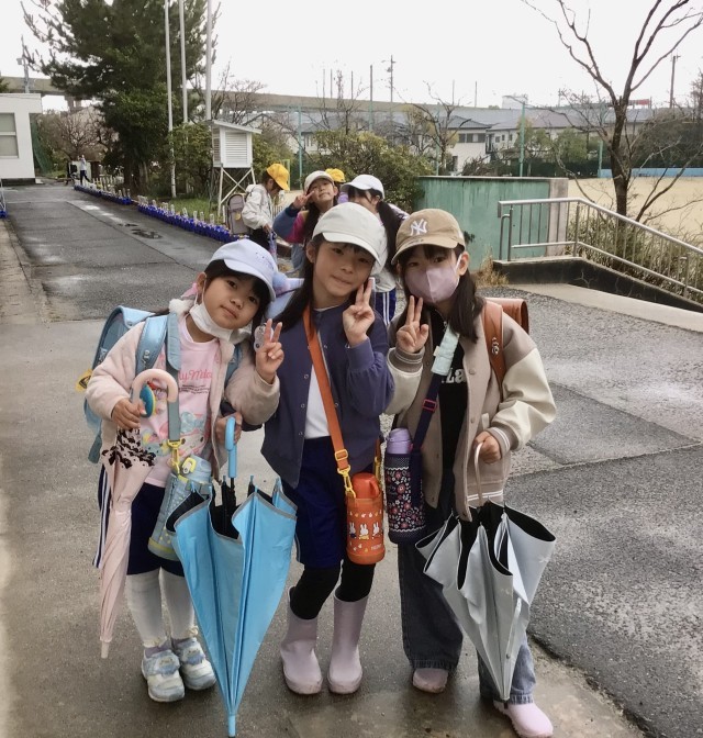 今日も 雨ニモマケズ、元気に登校しています!