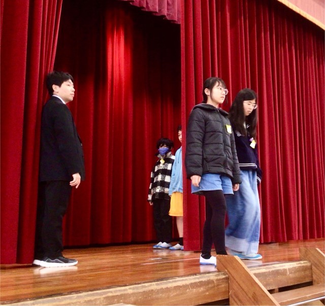 歩き方、指先、一旦止まる場所、階段の降り方、目線の配り方など、6年部の教師の指導のもと、緊張感をもって行うことができました。