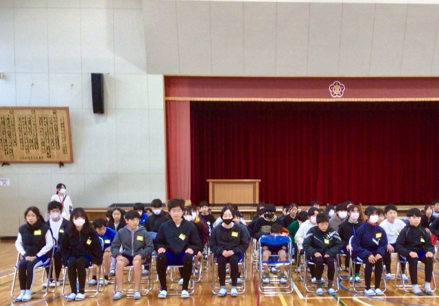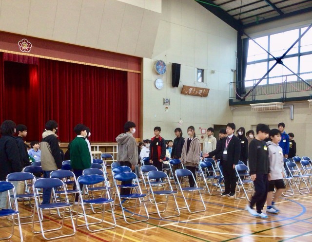 「卒業生 規律、礼、着席」の練習では、前回よりも動きがそろってきました。