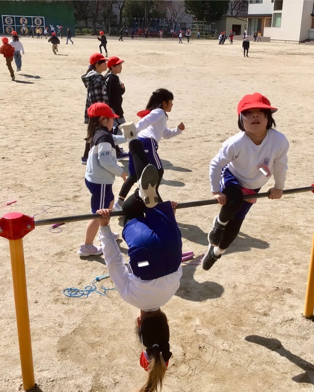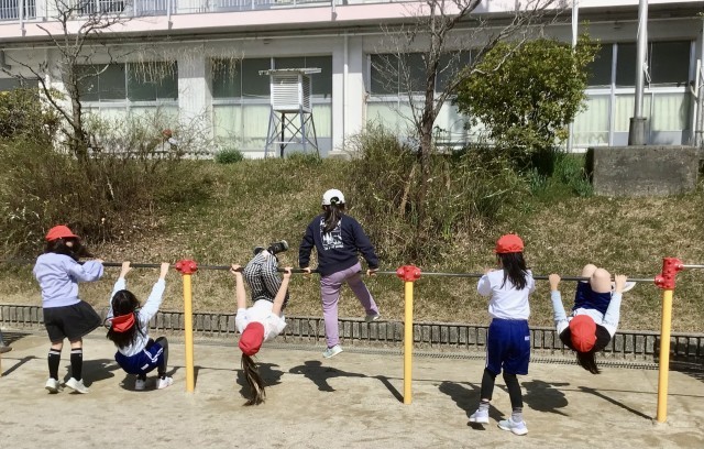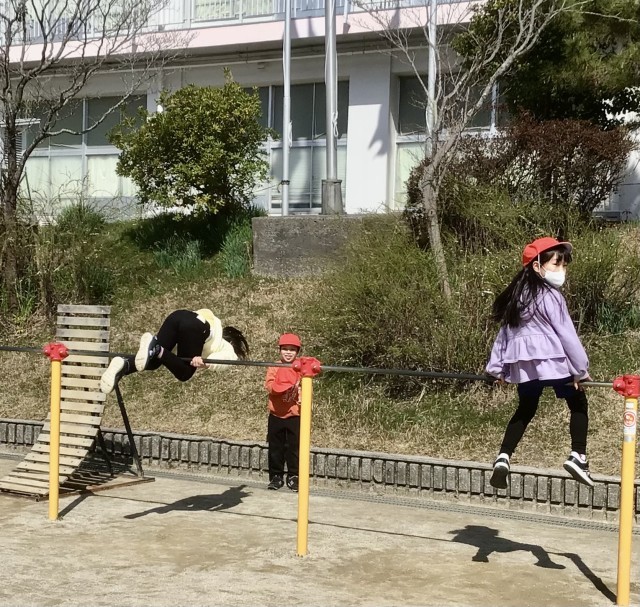 鉄棒コーナーでは、足かけ連続回りが流行っているようです!