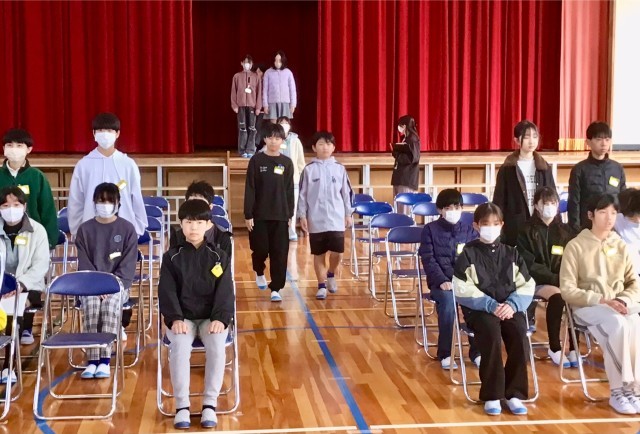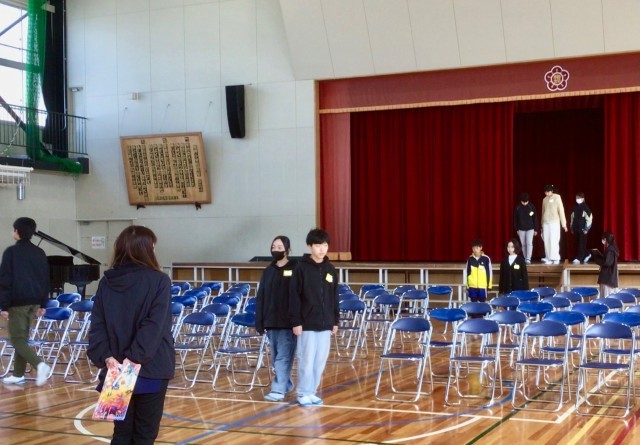 はじめに、実行委員の皆さんから 移動の姿勢、待つ姿勢、証書授与の練習では タイミングを合わせるなどの気づきの発表がありました。