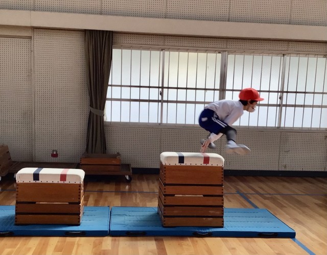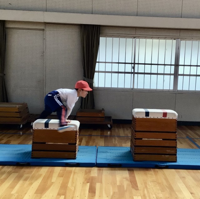 練習では ゆったりとしたBGMが流れるなか、子どもたちが気持ちを切らさずに 集中してロイター板を踏み切っていました。