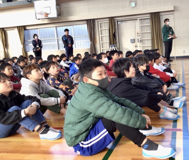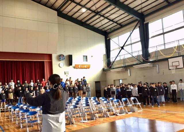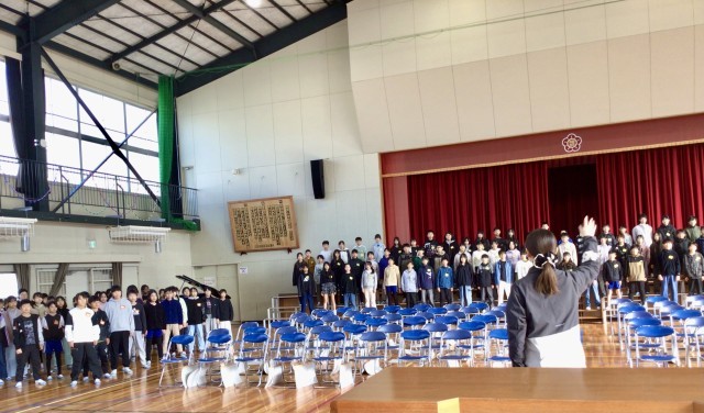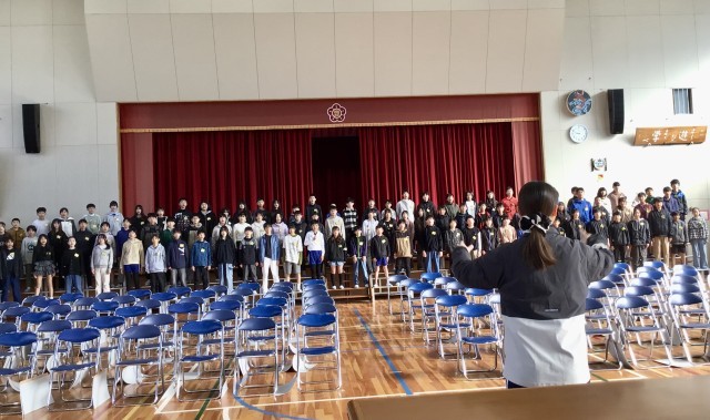 朝の時間帯に、高学年の皆さんが 1年生から4年生の皆さんに 合唱を披露しました。