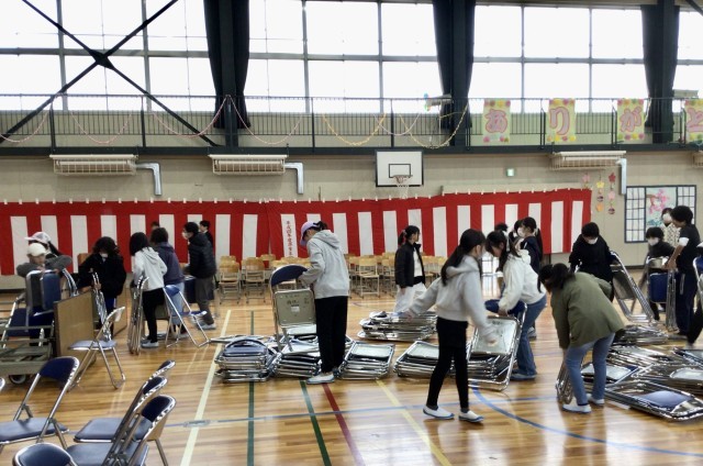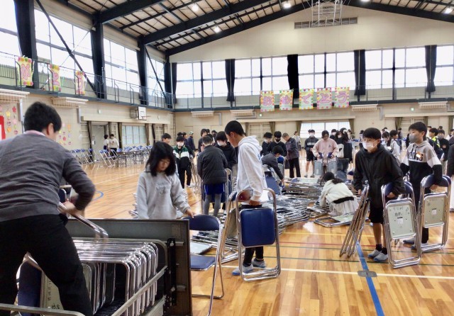 5年生は 最高学年として 会場の片付けに奮闘。