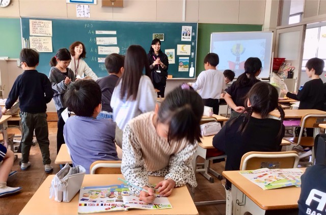 Hello から始まる アクティビティで盛り上がる3年生。