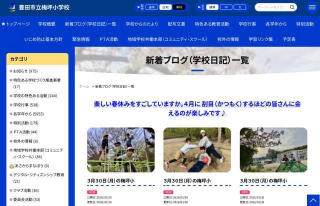 皆様には、今年度も 梅坪小の学校教育に対しまして、ご理解、ご協力を賜り 誠にありがとうございました。心より感謝申し上げます。
