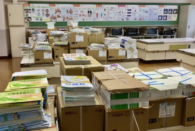 初めての共同作業は、職員室の模様替えと教科書、プリント類の開封、仕分けです!