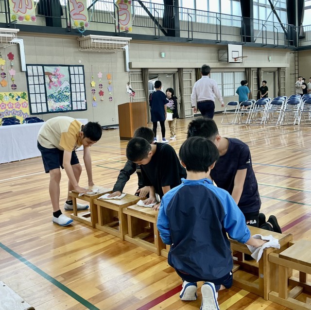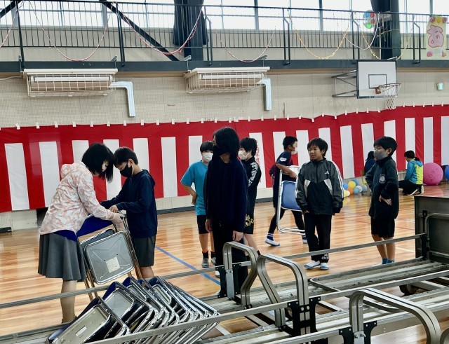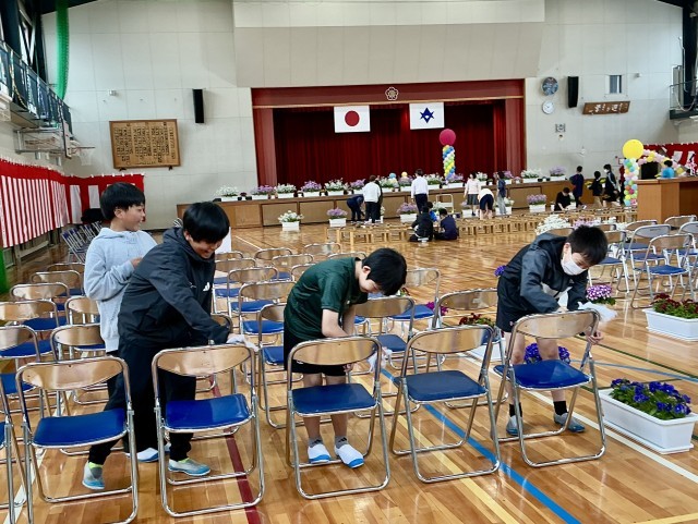 午前中、新6年生が登校し、入学式準備に全力投球。