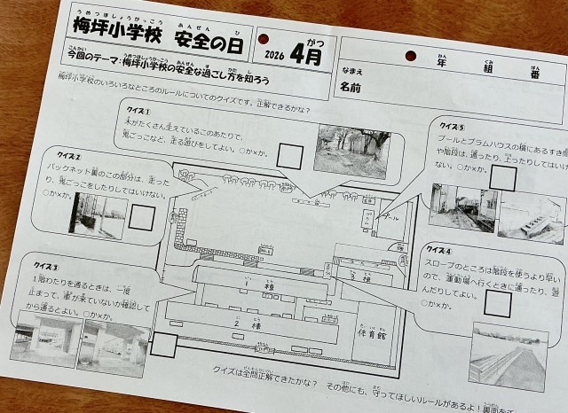 校内の危険な箇所について、クイズ形式で考えました。